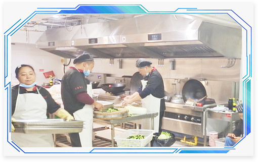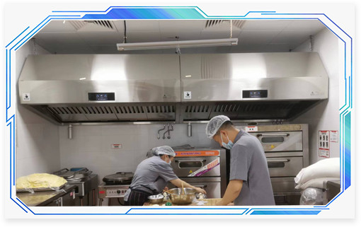 北京西平莊百姓大食堂為了支持響應(yīng)國(guó)家“藍(lán)天保衛(wèi)戰(zhàn)”政策,整個(gè)大食堂都采用的這種壹指藍(lán)環(huán)保油煙機(jī)設(shè)備,不僅不用向外部排放油煙,還給廚房人員更好的工作環(huán)境,更健康的身體。
